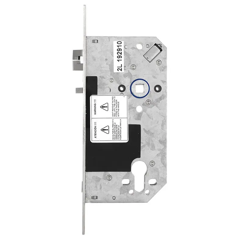 - Врізний замок: електромеханічний замок TESA ADB з автоматичним замиканням на основний ригель;