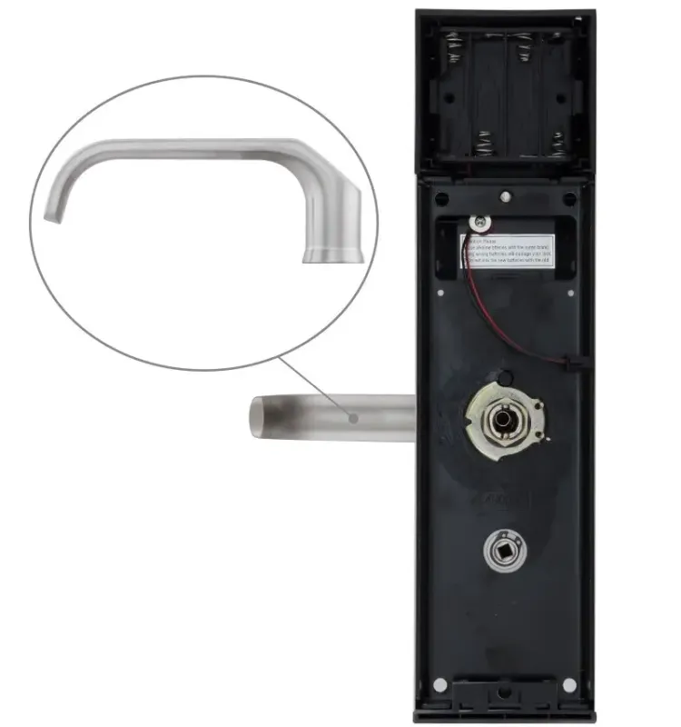 - Ємність пам'яті: 120 карт (1 Майстер карта і 119 карт користувачів, 1 код доступу) - Тип безконтактної картки Mifare ADEL - Програмування: автономне (не вимагає програмного забезпечення пристроїв програмування - Живлення: автономне 6 - 4 стандартних елементів живлення АА Аlkaline. - Ресурс елементів живлення: до 10 000 відкриттів. - Аварійне відмикання: механічний ключ. - Попередження про низький рівень напруги елементів живлення (червона індикація при відмикання). - Стійкість до пікових навантажень:> 15000 В - Ширина торцевої планки: 30,5 мм - Вага: 3.8 кг - Товщина дверей: 38... 55 мм. - Сторонность: Лівий (для дверей, що відкриваються всередину). Можливе перенастроювання для дверей з відкриванням назовні. - Оздоблення: нержавіюча сталь.