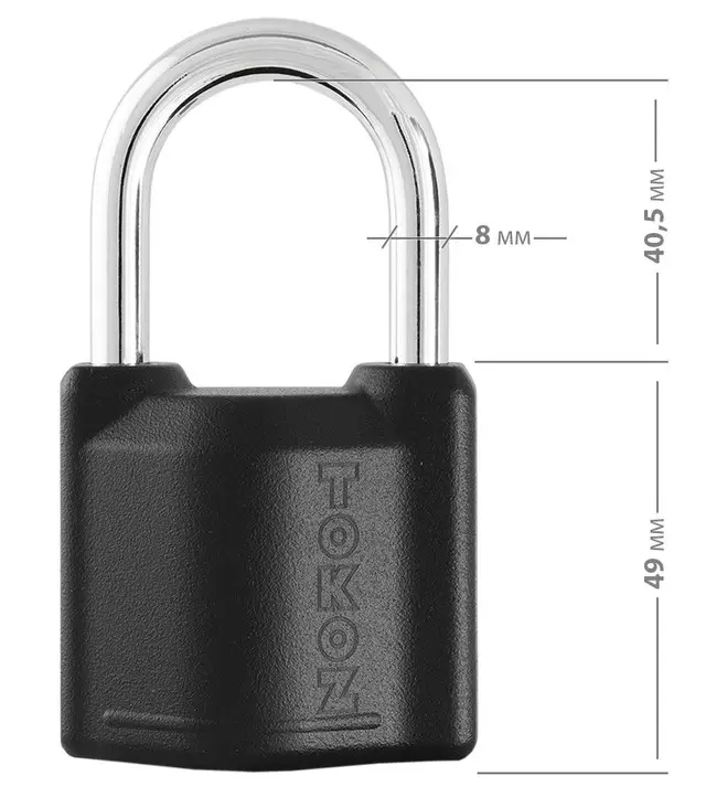 Навісний замок TOKOZ OMEGA 50 без циліндра та ключів, 40,5 мм 8мм чорний