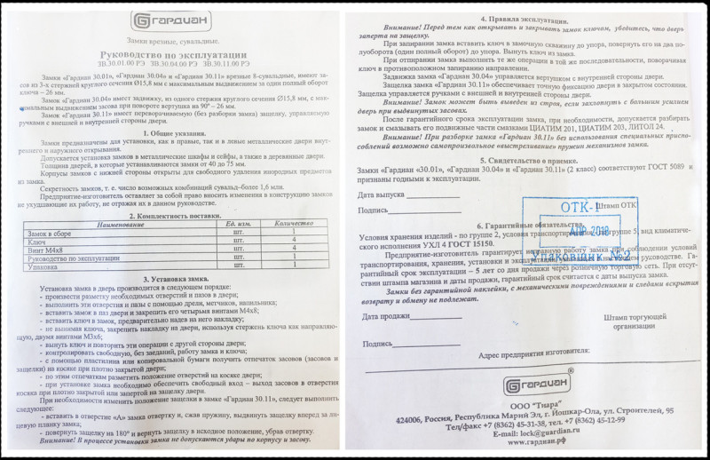 Гардіан 30.11 — врізний сувальдний замок із засувкою, призначений для металевих дверей, шаф і сейфів. Має універсальну конструкцію — підходить для лівих і правих дверей.