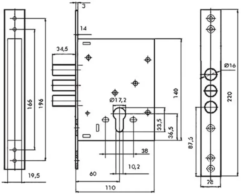 • Розміри замка: 140×110×19,5 мм